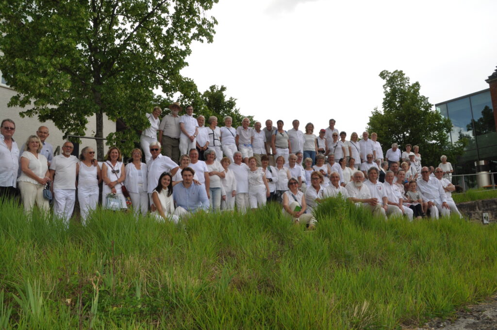 21.5.2023 Dîner en blanc rund um das Backhaus und Ausstellung im Bürgerbüro zu dem Thema 60 Jahre deutsch-französische Freundschaft und 25-jährige Partnerschaft mit Marcy L’Etoile